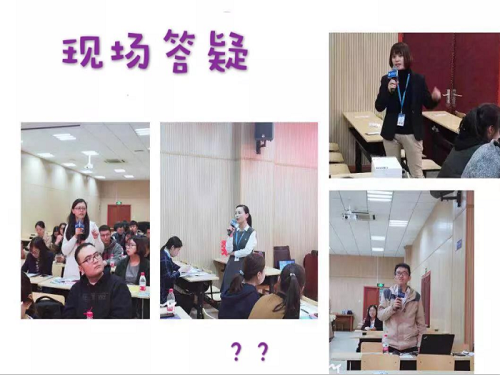宣講結(jié)束后,進入到現(xiàn)場答疑環(huán)節(jié),同學們積極地舉手咨詢,提出了自己對于職業(yè)發(fā)展,培訓晉升等疑惑,左經(jīng)理和徐經(jīng)理對同學們的問題進行耐心的解答。